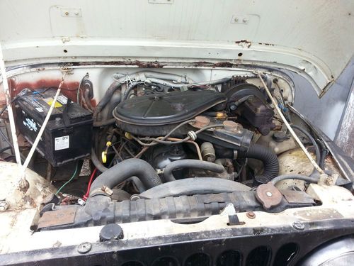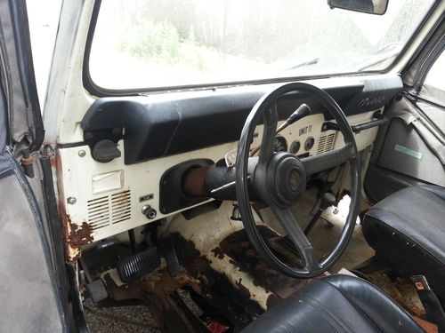 THIS JEEP IS A LOW MILEAGE ORIGINAL SURVIVOR. THIS JEEP HAS BEEN SITTING FOR A NUMBER YEARS IN A LOCAL BARN HERE IN NEW YORK. THE GOOD IS IT IS SUPER LOW MILEAGE ON THE ENGINE AND TRANSMISSION. THIS JEEP BELONGED TO A LOCAL MUNICIPALITY. THE JEEP IS NOT CURRENTLY RUNNING, WE PUT A BATTERY ON IT, AND WITH A TURN OF THE KEY IT WAS RUNNING ON STARTING FLUID SO I WOULD IMAGINE JUST A BASIC TUNE UP, FRESH GAS, AND SHE WILL RUN GREAT. I JUST CHANGED THE OIL AND FILTER ASWELL.