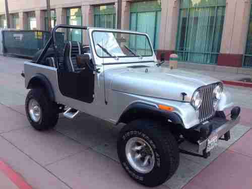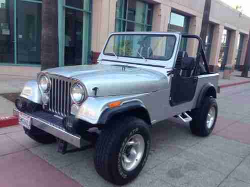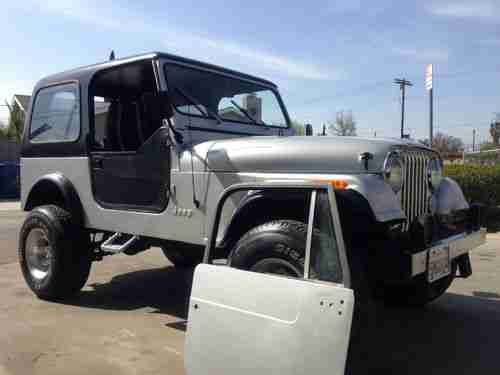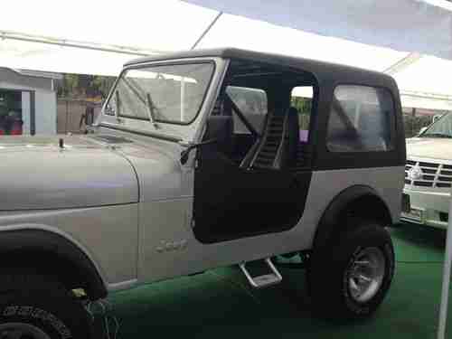 1986 JEEP CJ7 4X4 RUNS AND DRIVES GREAT HAS HARD TOP STEEL DOORS AND SOFT DOORS NEW PAINT 2 STAGE COLOR SANDED AND BUFFED 5 NEW TIRES NEW CARPET KIT NEW RHINO SPRAYED NEW TIRE COVER SEAT WERE REDONE 3 YEARS AGO WE ALSO HAVE THE STEEL DOORS AND REAR WINDOW FOR THE HARD TOP THERE IS IN RUST ISSUES AT ALL THIS JEEP IS SUPER CLEAN YOU WILL NOT BE DISSAPOINTED COME AND TAKE IT FOR A TEST DRIVE CALL 818-355-0374 ASK FOR CHRISTOPHER WE WELCOME 3RD PARTY INSPECTIONS WE ACCEPT PAY PAL ONLY FOR A DEPSOIT PLEASE DO OT BID IF YOU DO NOT HAVE THE CASH READY WE DO NOT ACCEPT ANT CREDIET CARD FOR SALE OF THIS CAR ONLY WIRE TRANSFERS AND MONEY ORDERS OR CASIERS CHECKS IF YOU WIN THE AUCTION WE NEED A NON REFUDABLE DEPOSIT OS $500. WITHEN 24 HOURS OF WINNING THIS AUCTION WE HAVE SET THIS AUCTION AT A VERY VERY LOW RESERVE THIS JEEP WA NEVER 4 WHEEL IN IT WAS USED FOR ONLY TRANSPORTATION CALL ME CHRISTOPHER 818-355-0374