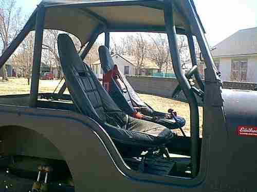 This Jeep is a blast to drive. We have driven it down to the river and played all day. It has the factory 304 Jeep V8 motor and 3 speed transmission. The body is in real nice shape and painted flat black primer. The seats are RCI 5 point seats with one 3 point Simpson harnis. It has Power steering and a 6 point roll cage. The axeles and wheels are from a 3/4 ton Chevy with 8 lug Hummer wheels. Tires are Goodyear Wangler MT 37-12.50-16.5s and look like new. It idels real smooth and starts right up. When I got it last year it had real heavy racing oil in it, I put 10w-30 oil in it and now you can hear a knock at an idle. The clutch is almost new and real tight, almost too tight. Needs windshield wipers installed, if you want them. and new floor rubber around the gear shifter. Has clean Kansas title as a 1975 Jeep. The guy I bought it from was driving it 12 miles every day to work. He showed me $8,200 in receipts for parts ONLY. I got a good deal on it when I bought it at $5,000. The reserve is $3,000. I have found a 2011 jet boat for this summer or I would not be selling it this cheap. My wife says we have too many toys. ..How can that be??.. If you would like to talk about it in person , I could email you my home #. Or email me through EBAY only. I will not respond to a third party email. Payment must be recieved within 7 days in the form of cash, casheir's check or bank transfer only. I can keep it for you as long as needed. Thanks for looking.