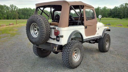 For Sale 1985 Jeep CJ-7 125,500 Miles VIN: 1JCCM87A2FT022294 OverviewYou are looking at a 3 owner 1985 CJ-7. This Jeep has been built for reliability, safety and the ability to do some mild trail riding. Lots attention to detail make this Jeep enjoyable both on and off the highway. It is titled, insured and passed emissions inspections up until it was registered as an antique in 2010. It drives and tracks well. Both axles are equipped with Detroit lockers and alloy axle shafts. The power steering is tight and the hydraulically boosted brakes are powerful. The emergency brake system was just serviced and holds well. All the electrical components work including the windshield washers and dash lights. The speedometer works and is accurate. There are lots of extras on this Jeep. See below. The fuel injection and ignition systems are fully programmable and a netbook and software is included for tuning and engine monitoring if you wish to do so. The EFI system uses an Innovate wide band O2 sensor for maximum tuning accuracy. The Jeep was purchased new in Texas and kept as a daily driver for many years. I am the third owner, with the second being a close family member. The Jeep was moved to the East Coast in 2002 and has been garaged or under a carport its entire life. It has been regularly serviced and has run Mobil One fully synthetic engine oil for most of its life. The roll cage was fabricated by a well-known fabrication shop, A to Z Fabrication, on the East Coast. It's main strucutre, made from 2" DOM tubing, is triangulated in numerous spots and mounts the suspension seats and five point Crow harnesses. The factory style seat belts were maintained and integrated into the roll cage for convenience. This gives you the option of wearing either the regular seatbelt or the 5 point harness. The seatbelts themselves are brand new. The Jeep is set up for flat towing and comes with a tow bar. The Jeep is sporting its original paint with spots of touch up paint in various locations around the vehicle. Known Issues: There is minor rust through in two of the four spots where the original rollbar met the body. These areas were not painted at the factory and tend to collect water and rust. It was not visible when the original roll bar was installed in the Jeep. See photos and video. Otherwise there is no rust through on the body or frame, only minor surface rust in the wheel wells and tub floor where the paint has been worn off. There has been no body work done to this vehicle. All the body panels are original and there is no body filler on this vehicle. The body has a few minor dents, including the front left fender, the rear right corner and the right rocker panel (not visible under the rocker guard). See photos. The engine drips a few drops of oil after being run for a long period of time. There is a very minor gear oil leak at the rear differential cover. It leaks a drop or two after being driven. The jeep will pop out of second gear on steep down hills. This is most likely a worn syncro, but it doesn't affect normal shifting. The front most exhaust manifold bolt hole on the head failed many years ago. A bracket was fabricated and installed to replace the bolt. The heater's air "recirculation" control cable is broken. The vehicle has no accident history and a clear Carfax history, which is available. Note that per Virginia law, the license plates will be removed before transfer. The buyer will be responsible for reregistering the vehicle in order to legally operate it on Virginia roads. Specifics:AMC 258 Inline 6 Cylinder Engine T-176 4 Speed Manual Transmission Dana 300 Transfer Case Front and Rear Detroit Locking Differentials Warn Premium Hub Conversion 3.73:1 axle ratio Electromotive Fully Programmable Electronic Fuel Injection with Distributorless Ignition Full Borla Stainless Steel Header and Exhaust 6 point A to Z Fabrication Full Roll Cage made with DOM Tubing Corbeau Reclining Suspension Seats with 5 point Crow harnesses AGR Power Steering Box and Pump Vanco Hydroboost Power Brakes BestTop Supertop 35" Goodyear MTR's with an average of 15/32" of tread (approx. 80% of tread left) includes spare RCV Alloy Front Axle Shafts with CV Joints Moser rear Alloy Axle Shafts Hydraulic Actuated Clutch Cenetrforce Clutch Disk and Pressure Plate Heavy Duty Cooling with oversized raditor 22 Gallon Gas Tank Warn Front Bumper Durango 4x4 Rocker Sliders with Removable Steps Clifford Alarm with Shock and Proximity Sensors Sony Waterproof CD Player with MP3 and removable Face SOA Suspension lift with 2.5" SkyJacker Springs Rancho 9000 adjustable shocks New Optima Yellow Top Battery JKS Telescoping Track Bar modified for the CJ7 Currie Tow Shackles Flaming River Steering Shaft Drawbar Included Toshiba Netbook computer, engine tuning software and engine tune file included Includes documentation for the fuel injection and alarm system in addition to supplemental information and a troubleshooting guide for this specific Jeep. Please contact me with questions or to arrange a viewing prior to the auction end. |