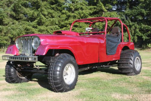 This is not your ordinary CJ-5 it has been converted to 2wd and has had the frame lengthened 36" with a custom fiberglass front end and loves to blast thru the sand dunes.