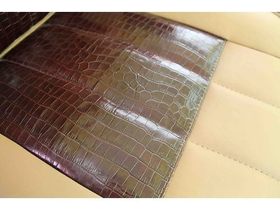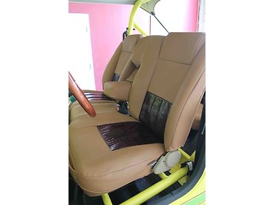 Speaking of that paint, it's complemented by an interesting graphics package in contrasting black and Crush Orange. The cabin sports Katzkin Amaretto leather seats, along with tech-friendly items like a wireless charging system for cellphones and wireless internet.