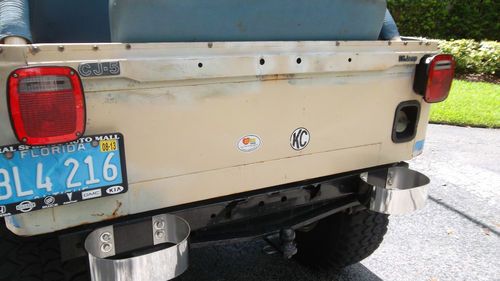 LIKE A SAID BEFORE THIS IS AN AWESOME! JEEP IT HAS THE ORIGINAL 304 AMC ENGINE AND 3 SPEED TRANSMITION IN PERFECT CONDITION NO SMOKE AND DRIVES GREAT.IT HAS ITS ORIGINAL PAINT MORROCO BUFF AND DECALS, SOME WEAR AND TEAR BUT IN GOOD CONDITION FOR A 34 YEAR OLD VEHICLE, TIRES (35X12.50X15) ARE IN GOOD CONDITION AND MIKEY THOMPSON RIMS ARE ALMOST NEW (8 TO 9 MONTHS OLD) ALSO HAVE NEW ALTERNATOR, STARTER, CLUTCH, GAS FILTER, BRAKE MASTER CYLINDER, SIDE MARKERS, HOOD CATCH KIT, FRONT SIGNAL LENSES, BRAKE TAIL LIGTHS, FRONT SKYJACKER SHOCKS, KENTROL WINDSHIELD HINGES AND MIRRORS, WIPER BLADES, STAINLESS STEEL BUMPERETES, EDELBROKE CROME CARBURETOR COVER AND OIL CAP, AND SHIFTER BOOTS, REBUILT CARBURETOR, ALSO NOT NEW BUT WORKING J.V.C AM/FM/CD RADIO. CIGARETTE LIGHTER WORKS SO YOU CAN CHARGE YOUR PHONE ANYWHERE YOU GO,THE ONLY THING DOES NOT WORK IS THE GAS GAUGE, YOU ARE GOING TO LOVE THIS FUN VEHICLE ! I PREFER TO COLLECT PAYMENT IN PERSON, CHECK OR MONEY ORDER.