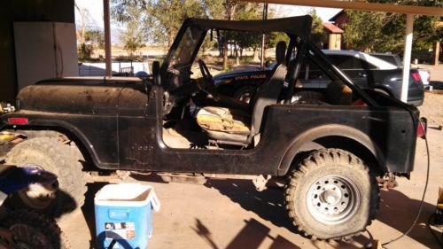 Runs great starts right up. I've spent $5000.00 fixing it up. Needs seats recovered, needs air cleaner box, and just needs misc. items. 1979 Jeep CJ7 Six Cylinder engine, black paint done 1 year ago, carb replaced about six month ago. Rebuilt engine and Tranny about 1.5 years ago, not many miles since work done. Used for hunting. New Drive line about 4 month ago. Super Swamper tires on the jeep. Still needs a little work, needs seat covers on front seats, needs read seat, gauges don't work. Tow bar will be included hooks up to front bumper and can be pulled with a 2 inch ball.