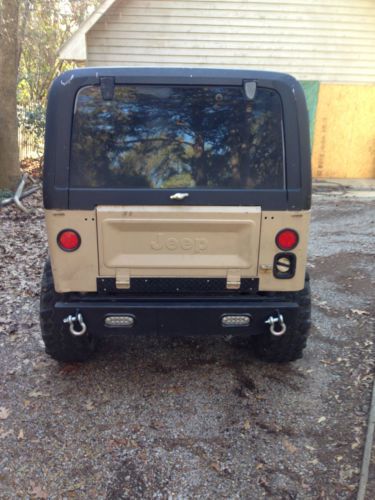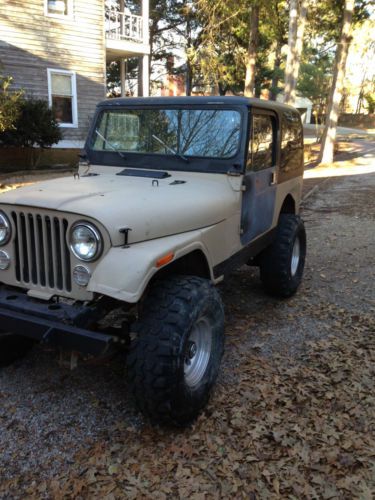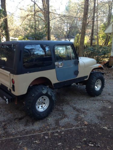 You are considering a 1982 Jeep CJ 7. This jeep is solid and well built, it has never left the south. It is equipped with the 258 inline 6 cylinder, with a 4 bbl edelbrock intake and carb, HEI distributor, and a yellow top optima battery. It has a 5 speed manual transmission mated to a dana 300 transfer case. It has Detroit locker in the rear end and a locrite locker in the front with 4:11 gears. It is equipped with a 4 inch skyjacker suspension lift and a 2 inch body lift with 36x12.50x15 super swamper tires. All gauges work except fuel and speedometer. It has a stage 1 paint job, which I think looks best on older jeeps. It comes with a hard top, full steel doors, half steel doors, and a soft top frame. This jeep is very reliable and can be driven daily or used as a toy. I drive it around town a few times a week. There are a few dents in the normal places, see pics for details. I haven't been able to find any rust, and this is my 7th jeep so I know where to look. My number is 662-352-9189, please feel free to ask any questions.