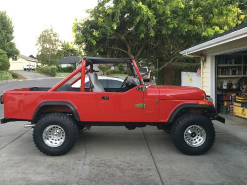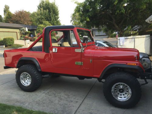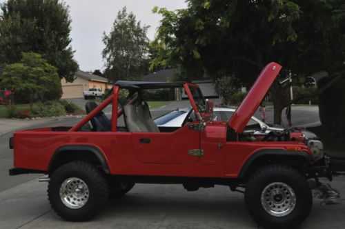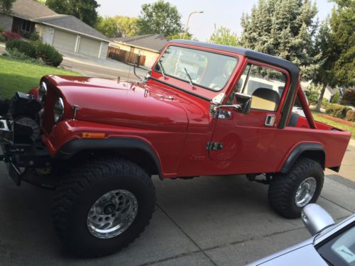 im selling my 1983 jeep scrambler cj8 it has a 2 year old paint job that looks amazing very straight very high quality paint job.No rust no dents all original metal. it also has a 4"diamond lift kit a 2" body lift 33" tires it has all new weather stripping on the full jeep doors with new door handles it has a new windsheild with new wether stripping aswell. when i had the jeep paint i had the body blasted down to bare metal and removed from the frame. the windsheild the paint job was very high quality and looks so good in person. i put a chevy 350 crate motor in it with the original 4spd the jeep drives great. it starts up easy and drives straight and nice. i drive on the highway daily and its smooth, the jeeps clutch is new lift kit and shocks are 2 years old. the jeeps 4x4 works fine i never take it off road . i installed a back seat with belts for my kids but the seat can be easily unbolted if you want it back to original truck use. i have the original scrambler truck hard top that i had re textered and painted when i had the jeep painted.every car show i go to people stop and love the jeep i get thumbs up when i drive it. the jeep drives very nice and is fun to drive. it is not flawless its regular wear on the paint and body but i honestly never seen a nicer cj8 in person or a better paint job on a jeep.the pictures describe the jeeps cosmetic condition . the jeep has new dual exhaust that sounds nice not loud . i also recently installed new alternator . im including all and any extra jeep parts i have with the sell of the jeep wich is the extra set of doors and the soft top hard top extra mirrors running lights 2 keys .i have clean title in hand. my feedback is great because im honest seller this jeep is nice! the buyer is responsable for pick up or any shipping costs.also the jeep has a tilt steering wheel all guages work all lights work horn works 4x4 works jeep shifts smooth. comes with bikini top half doors wirh soft inserts and hard top and hard doors i also will throw in some extra mirrors and a power brake booster.