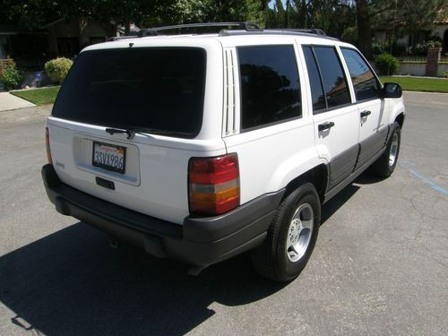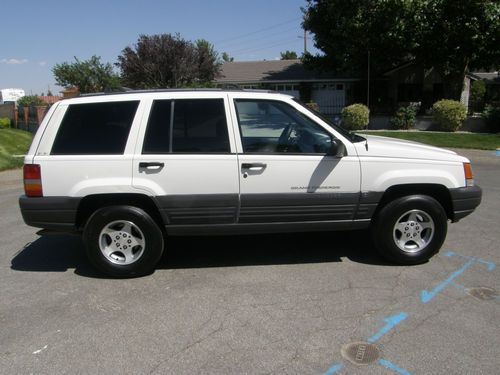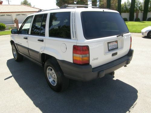 YOU ARE BIDDING ON A 1996 JEEP GRAND CHEROKEE (ALL ORIGINAL PAINT AND INTERIOR) THIS TRUCK IS FULLEY LOADED WITH ALL OPTIONS. THE A/C BLOWES ICE COLD , ALL THE OPTIONS WORK GREAT. THE JEEP HAS A 4.0 STRAIGHT 6 (THERE BULLET PROOF). THE TRANS SHIFTS PERFECT. THE VEHICLE DRIVES GREAT. THERE IS NO BODY DAMAGE ON THE TRUCK (NORMAL PARKING LOT TYPE STUFF) THE INTERIOR IS BEAUTIFUL NO TEARS , THE HEADLINER IS PERFECT. THIS IS TRULEY A FREEWAY DRIVEN VEHICLE. THE TRUCK LOOKS LIKE A 50,000 MILE VEHICLE. IF YOU HAVE ANY QUESTIONS OR WOULD LIKE TO SEE THEW TRUCK CALL B OB @ 661-857-3245