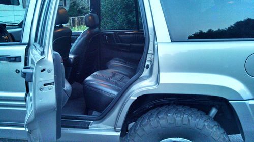 No rips or tears in the leather, the only 2 electronic things I noticed that doesnt work is the drivers heated seat and the rear wiper. The headliner is starting to sag in a few spots(see photos), there is very little rust on this Jeep under the doors but it isn't noticeable unless you crawl under it, My plan was to find another hood but no luck yet. The suspension is brand new, I currently do not have a front driveshaft in it due to vibrations, I will include the cv front shaft but it should be upgraded to a ujoint front shaft out of a 6cyl ZJ. I do not need 2 vehicles so this one needs to go, It really is a nice looking Jeep Id like to see I go to a good home where it will be finished up. With a little TLC it will be perfect. Any questions please feel free to ask. The vehicle is being sold as is, with no warranty etc. Low reserve bid now to get a hard to find 5.9 ZJ!