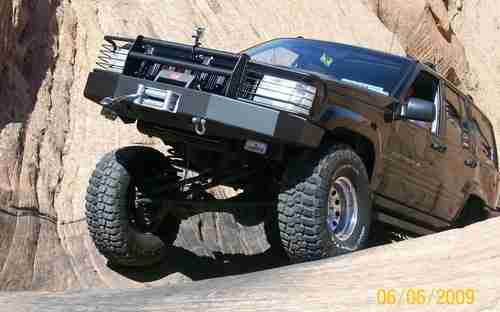 8 inch Lift, Five 35 inch BFG M/T K2 Tires on Chrome Steel Wheels, KOR Rock Sliders, Steel Front & Rear Bumpers, Rear Tire Carrier, Warn 9000i Winch with steel cable, Front Bumper mounted Brush Guard, 2 inch Tow Receiver, Tow Points front and rear, Rear Differential rebuilt at 128,000 miles and Aussie Locker added, Front Differential stock, Transfer Case stock (4 Wheel High, Neural, 4 Wheel Low). Stock 3 Speed Automatic Transmission, New Disks and Brake Pads all 4 corners at 127,000 miles, Custom Taillights, New Battery 3/27/2013, Previous owner let the block freeze and crack, installed new Crate Engine at 122,000 miles (now at 131,708 miles), new Shocks on the rear Sept 2012