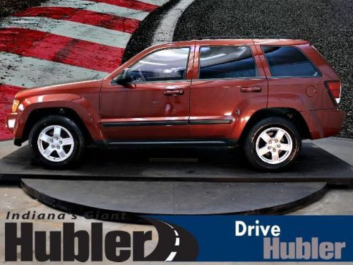 Red Rock Crystal Pearl exterior and Medium Slate Gray interior, Laredo trim. Clean. PRICE DROP FROM $12,995. 4x4, CD Player, Alloy Wheels, Overhead Airbag, One Year No Charge Oil Changes. 5 Star Driver Front Crash Rating. READ MORE!======JEEP GRAND CHEROKEE: UNMATCHED DEPENDABILITY: 5 Star Driver Front Crash Rating. 5 Star Driver Side Crash Rating. ======IT'S NEVER BEEN A BETTER TIME TO OWN THIS GRAND CHEROKEE: Value you deserve. Reduced from $12, 995. ======KEY FEATURES ON THIS GRAND CHEROKEE INCLUDE: CD Player 4x4, Aluminum Wheels, Privacy Glass, Keyless Entry, Electronic Stability Control. Laredo with Red Rock Crystal Pearl exterior and Medium Slate Gray interior features a V6 Cylinder Engine with 210 HP at 5200 RPM*. One Year No Charge Oil Changes. ======SIMPLY THE BEST: GRAND CHEROKEE: The Grand Cherokee offers more 2nd Row Leg Room than Honda Pilot and Toyota 4Runner. You will also get More Highway and City Cruising Range Miles than the Ford Flex, Ford Explorer, and Honda Pilot. With 35.1 cubic feet of Cargo Volume (behind 2nd row), the Grand Cherokee will accommodate the equivalent of 5 carry-on suitcases and 2 sets of golf clubs. ======WHO WE ARE: After more than 50 years in business, The Hubler Auto Group, through the power of ten central Indiana locations, has literally sold hundreds of thousands of vehicles and is one of the oldest and most prolific auto dealers in the State employing 550 people. The Hubler Auto Group can claim the title for selling more G.M. vehicles in the State of Indiana than any other dealer or dealer group, and has earned the right to brag of having the largest and most loyal customer Pricing analysis performed on 6/18/2014. Horsepower calculations based on trim engine configuration. Please confirm the accuracy of the included equipment by calling us prior to purchase. Hubler Nissan is committed to providing the finest automotive ownership experience through superior customer service. Let us make you a "Customer for life". We have 99% Guaranteed Credit Approval! For more details or to schedule an appointment, call us at 888-566-9218.