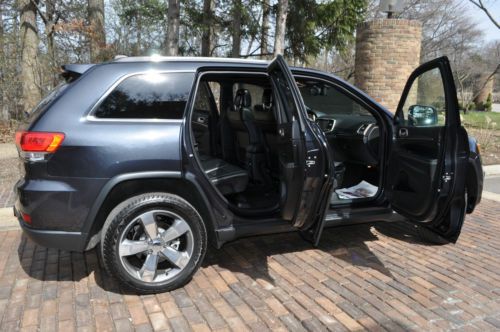 GRANITE CRYSTAL METALLIC CLEARCOAT matched with a beautiful PREM BLACK LEATHER interior 2014 JEEP GRAND CHEROKEE LIMITED with the super powerful 5.7 Liter Hemi..........Only 623 miles--Owned for less than 2 weeks...........RWD..............5.7 Liter V8 multi displacement HEMI which deactivates cylinder in highway driving by de activating unwanted cylinders.................Gorgeous Gorgeous vehicle........NAVIGATION SYSTEM WITH PINPOINT MAP ACCURACY DIRECTIONS for go anywhere driving..........Am/fm/cd on a beautifully crafted 7 inch media screen that controls all your gadgets..............Am/fm/cd.............DUAL Power HEATED mirrors...........DUAL POWER HEATED & COOLED SEATS WITH MEMORY for driver 1 and driver 2 settings..............REAR HEATED seats as well......................................Leather wrapped steering wheel.........Power sliding and tilting moon roof..................Factory remote start...................Steering wheel controls............Fog lights....................................REAR VIEW CAMERA which displays live video feed of rear while vehicle is in reverse mode.................................SATIN accented mirrors..........REAR back up sensors which alert you when backing up to a vehicle......................Traction control...........Steering wheel controls............Power windows...........Power locks....Traction control....vehicle anti-theft...........Cruise control........................20" factory ALLOY wheels to go along with SUPERB TIRES..........................Bluetooth connectivity and so much more!!!.......Beautiful GRANITE METALLIC exterior with a mint condition interior....Tackle anything with the awesome awesome 5.7 Liter Hemi engine in a superior performance outfit.........Must feel the power and prowess of this vehicle to believe. ***********Note: Please do not place a bid on these vehicles and ruin our auctions and a fair chance for other bidders unless you have been PRE-APPROVED by your bank/credit union for financing on a REBUILT title...This is a NO TOLERANCE policy and you will get reported to Ebay for non payment!!!************ THIS IS A NO RESERVE AUCTION WHICH MEANS HIGHEST BIDDER TAKES THIS GORGEOUS JEEP GRAND CHEROKEE LIMITED-EDITION HOME!!! Feel free to call with any questions 248-255-1164 (Michael) Will ship your vehicle to your desired destination anywhere in the states at dealer discounted hauler/freight services. Areas are as follows which include neighboring/surrounding states as well. N.Y area- $550 Florida area- $650 Texas area- $800 California area- $950 This vehicle will come with a FREE 3 months/4,500 mile POWERTRAIN warranty which includes ENGINE/TRANSMISSION/ALL MAJOR COMPONENTS AND SO MUCH MORE and is once again FREE OF NO CHARGE TO YOU! Extended warranties available upon request as well. Note: Please note that when bidding over $25,000 on any vehicle, ebay will need to verify your info so do not wait until the last minute to place your bid as it could lock you out of the bidding process as verification could take up to 2 minutes, thanks. ***********Note: Please do not place a bid on these vehicles and ruin our auctions and a fair chance for other bidders unless you have been PRE-APPROVED by your bank/credit union for financing on a REBUILT title...This is a NO TOLERANCE policy and you will get reported to Ebay for non |