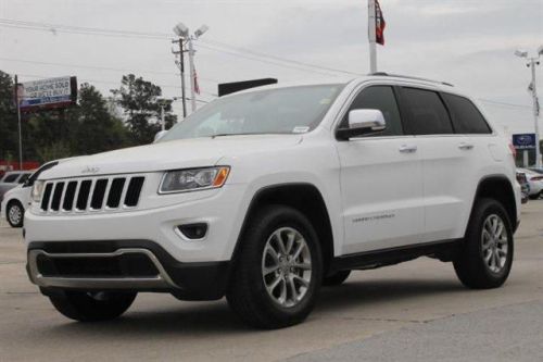 Heated Leather Seats, Premium Sound System, Satellite Radio, iPod/MP3 Input, 4x4, Heated Mirrors, Alloy Wheels, Overhead Airbag, Flex Fuel, Back-Up Camera, Heated Rear Seat. EPA 24 MPG Hwy/17 MPG City! Limited trim CLICK NOW! KEY FEATURES INCLUDE Heated Leather Seats, Heated Mirrors, Heated Rear Seat, 4x4, Power Liftgate, Back-Up Camera, Flex Fuel, Premium Sound System, Satellite Radio, iPod/MP3 Input, Bluetooth, Aluminum Wheels, Remote Engine Start, Dual Zone A/C. Rear Spoiler, MP3 Player, Privacy Glass, Keyless Entry, Remote Trunk Release. VEHICLE REVIEWS Great Gas Mileage: 24 MPG Hwy. BUY FROM AN AWARD WINNING DEALER Rick Hendrick Jeep Chrysler Dodge is the premier dealership for New and Used Jeep, Chrysler & Dodge vehicles in Charleston, South Carolina and specializing in Jeep, Chrysler & Dodge Sales, Finance, Service, and Parts. At Rick Hendrick Jeep Chrysler Dodge, our customers are being provided with high quality service and excellent after sales support. Closing Fee is included in the advertised/sales price. Fuel economy calculations based on original manufacturer data for trim engine configuration. Please confirm the accuracy of the included equipment by calling us prior to purchase. - This 2014 Jeep Grand Cherokee 4dr 4WD 4dr Limited 4x4 SUV features a 3.6L V6 24V VVT FLEX FUEL 6cyl Flex Fuel engine. It is equipped with a 8 Speed Automatic transmission. The vehicle is BRIGHT WHT with a Other Leather interior. It is offered with a full factory warranty. - Air Conditioning, Cruise Control, Tinted Windows, Power Steering, Power Windows, Power Door Locks, Power Passenger Seat, Memory Seat Position, Digital Info Center, Steering Wheel Radio Controls, Passenger Airbag, Keyless Entry, Security System, ABS Brakes, Dynamic Stability, Rear Defogger, Fog Lights, Intermittent Wipers, AM/FM, Leather Interior Surface, Four Wheel Drive, Heated Driver Seat, Heated Mirrors, Heated Rear Seat, Power Liftgate, Back-Up Camera, Flex Fuel, Satellite Radio, iPod ... Be sure to utilize our great team of Internet Sales Managers whether you are browsing online or decide to come see our Charleston car dealership for yourself!