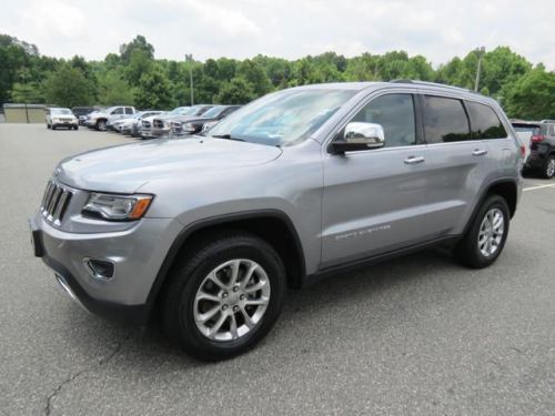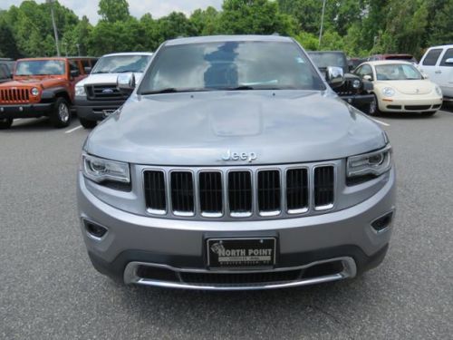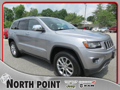 This silver metallic 2014 Jeep Grand Cherokee 4WD Limited is executive in appearance and offers refinement, while maintaining its capability to navigate all types of terrain with ease! Engineered with a smooth 8-speed transmission, not only is ride quality unbelievable, fuel economy averages stand at an impressive 17/24 MPG! This luxurious midsize SUV is equipped with tons of options, including power tilting/telescoping, heated leather-wrapped steering wheel with mounted audio controls, Jeep's acclaimed 8.4 inch UConnect system (including back-up camera, navigation, Sirius satellite, Bluetooth, USB interface), paddle shifter, remote vehicle start, push button start, auto-dimming rear view mirror, automatic headlights, sunroof, black leather upholstery with power/memory/lumbar support, heated second row seating, power liftgate and 18 inch alloy wheels! This clean Carfax, one owner vehicle is Jeep Certified, with a 100,000 mile/7 year from original in-service date extended warranty! The IIHS awarded the 2014 Jeep Grand Cherokee with its optimal safety rating of good in frontal-offset, side and roof-strength crash tests! Call North Point Chrysler Dodge Jeep Ram, located in Winston Salem, NC, to schedule a test drive today! You have made the right Choice by Contacting North Point Chrysler Jeep, Here's why? - Winston Salem's only Five Star Chrysler-Jeep Dealership - #1 Chrysler-Jeep Dealer in NC/SC -Top 50 Chrysler Volume Dealers in the U.S.A. - Nearly 400 vehicles in stock. "Stop Shopping and start driving"