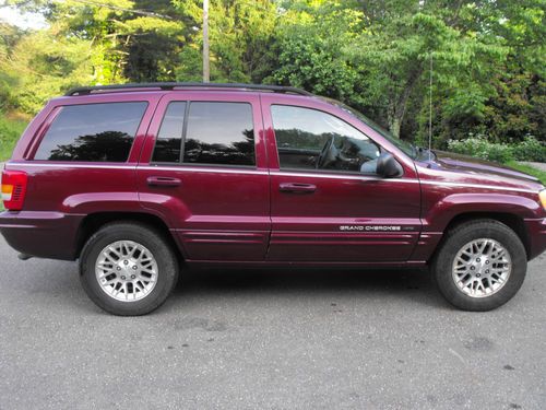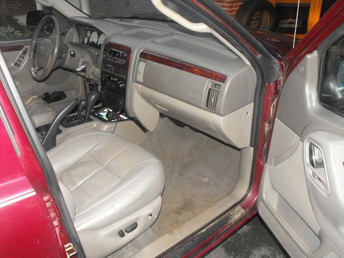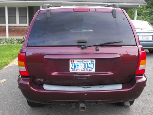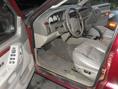 We have decided to sell my jeep that I love, when I say we I mean my daughter I gave her my jeep to be her first car to drive something safe and reliable. But if any of you have teenage daughters you know where this story is going, now she want a mustang so we need to sell this to help pay for one...........That out of the way I am selling this 2002 jeep with no known mechanical problems w/ matching goodyear that I would say are 40% life left. This jeep has all options including a power sliding sunroof that is pictured. There is only two issues with this jeep the drivers side seat is cracked and torn this happens with leather seats and the rear bumper is crack someone stood on it and it cracked on the corner "someone being me" but that is it all of this you can see in the pictures so happy bidding...also jeep has towing package idk if I got a photo of it or not.. The paint is in good shape considering its age some chips but nothing bad. If you are notto far away I will try to deliver to the winner. Thanks