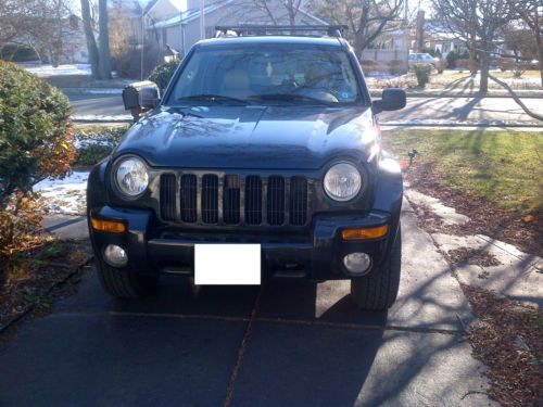 Up for sale is a 2003 Jeep Liberty Limited Edition. I will try to describe the vehicle as accurately as possible because I know online buying can be risky. Car has a few defects that can be expected with a 10+ year old vehicle. There is slight rub with the front right tire along the fender when making slow/sharp turns. This doesn't affect driving other than slight noise when turning into parking spots. The motor on the sunroof is also broken and needs to be fixed. She is currently approaching 99,000 miles and still runs fine. Although some flaws, the car has been daily driven for years and still runs strong. 4wd runs great for the winter season. 5 aftermarket, black rims along with 5 like new tires that were put on before the winter months. Leather seats, along with heated and power controls for the front two. Accessories that are not included include the roof rack (an attachment for my saab), and the sony aftermarket head unit (will obviously re-install stock jeep unit).