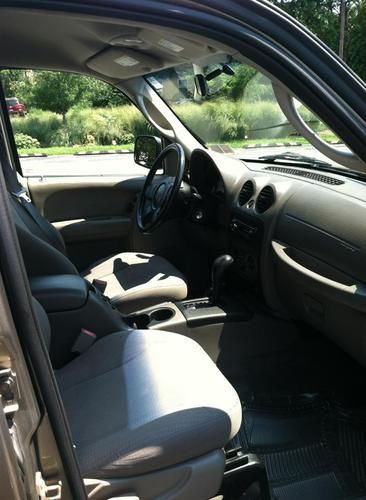 2004 Jeep Liberty for sale! This is a great ride, only 2 owners, I've had it for the past 8 years and has never let me down. 119,000 miles, V6, tan cloth interior, runs strong. Recently replaced the radiator, new tires, battery and have had all the lines flushed. It's been maintained well, no leaks on the ground, ac and heat work really well...a little wear and tear on the interior but very clean over all. Has a Sony Radio equipt with iPod hookup, satellite and cd player. I don't have any of the outside branding on it, a sticker package can be purchased if desired. This is a must sell and the price is negotiable. I have the title in hand. Any questions or comments feel free to ask! This needs to go by end of month, taking offers!