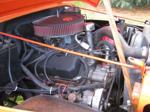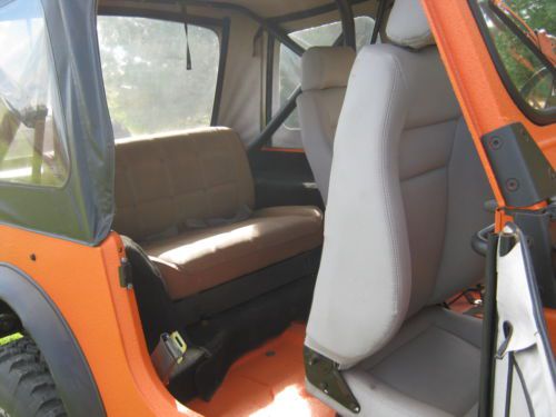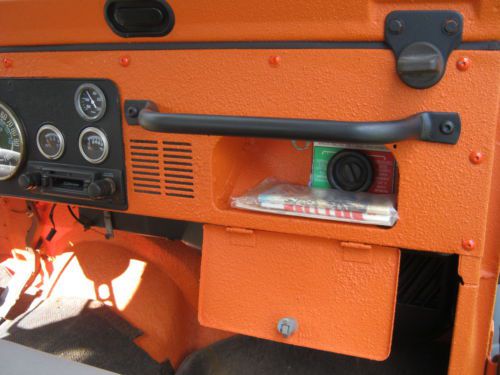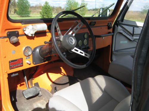 401 AMC motor. Turbo 400 transmission. All rust was fixed with new metal on body and frame. Full soft top. Base coat orange with orange rhino liner top coat. Runs good. Needs drive shafts. This was a winter project and need to sell for medical reasons. My loss your gain.