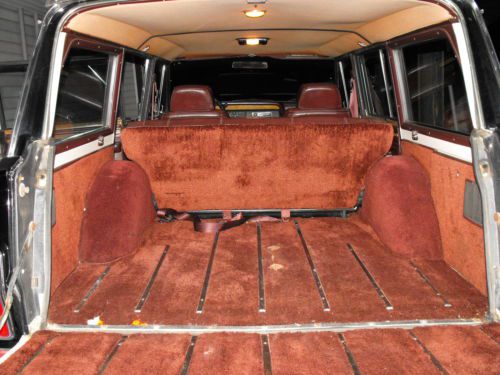 This beauty has a black base-coat with 11 coats of clear top-coat, factory 3M wood-grain, and is car-port kept. This Grand Wagoneer has slightly over 100,000 miles on original odometer. It has a Panasonic DPG 600 CD player/ receiver. This vehicle comes with extra 3M wood-grain for any future repairs that might be needed, and an extra starter. This Jeep is a gem, and needs only minor touches to be absolutely perfect. Pictures show four small holes in the carpet of the cargo area. Additionally, front passenger door does not open from the inside and air conditioning works, but needs Freon charge (original r-12 system). This Jeep is in great condition and runs perfectly! This Jeep is being sold 'as-is', with no warranties or guarantees being implied or written. All cashier's checks must clear into my account for ten (10) days prior to titles being signed and property being picked-up. |