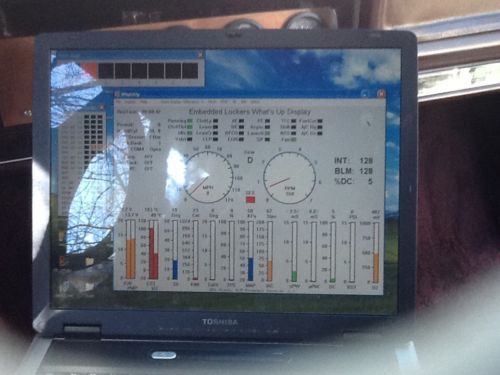 - converted to TBI fuel injection, controlled by Dynamic EFI EBL locker system - you tune your car (spark advance curves, fuel VE tables, etc) from a laptop inside your car! No chip swaps, will store 8 different tunes - for example, you can run lean for highway driving, a little richer and more spark advance to thunder up mountain passes, etc). More info at dynamicefi.com - current emissions tag - 40 gallon fuel tank with top-accessible fuel pump, raised to preserve ground clearance - 6" leaf spring lift with ProComp shocks and steering stabilizer - replaced np229 transfer case w/ np208 (more reliable, not vacuum controlled) - heavy-duty Cadillac steering box, a great stuck-to-the-road feel, straight and true at 80mph on highway - all VDO gauges and some custom dash work - engine rebuilt by Western Engine Supply @ 178,536 miles, total 194K - electric seats and windows ( currently rear window works from dash, but not at tailgate) - you get the POS computer to tune/play with the system (if you want it; you can use any computer running a relatively recent version of Windows), tons of original parts/gauges, trim pieces that haven't been installed, maybe my Hi-Lift jack I took on this project mid-stream, and it is mechanically and electrically 90% complete! Still a few things to address - radio not installed, needs a center console ( I have a first attempt POS console you can have to use or as a template for your solution), has a transmission fluid leak, some rust spots that I've ground down and applied rust inhibitor, but not painted. Rear headliner was drooping, so it's been pulled and painted, but no fabric reapplied yet. |
