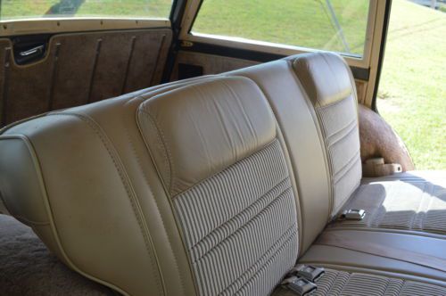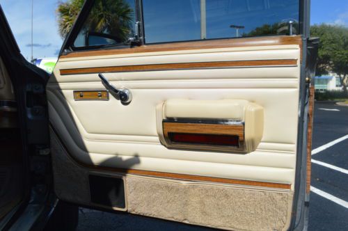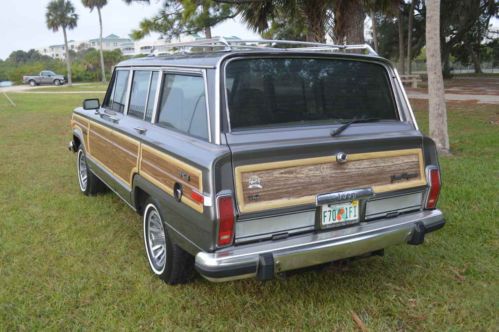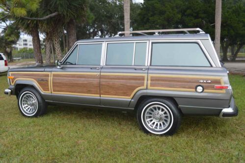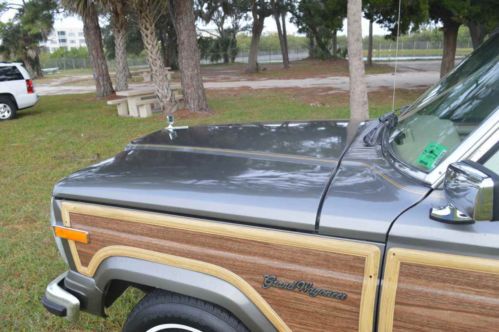 If you have been looking for a WOODY this is it.. 1990 Jeep Grand Wagoneer. Grey with tan interior. 78,740 actual miles. 5.9 Liter, V-8 (360 CID) 2-barrel Carburetor. This " Woody" is a classic and nearly perfect condition. There is no rust anywhere. Undercarriage is clean. ( I have those pictures if you need them). Interior-- All seats are in very, very good shape. Not sure anyone ever sat in the back seat. Review the pictures. This color combo is hard to find. Lots of woodys with the red interior but not many with tan in this GREAT shape New steering wheel leather, front seat sections with new leather. New floor mats. Carpet thru-out is clean. No stains. All door locks, windows, tailgate, lights, switches, controls, power seats, overhead temp gauge, gas gauge, all work fine. This jeep is very clean. No dents, scratches, completely rust free. The Jeep has lived in GA and FL. The previous owner re- conditioned the engine, added new belts, hoses, wiring, new interior rubber seals around the doors front and back and a new headliner. I bought the car in June 2012 and have since, Air conditioning was redone to new freon. Just rebuilt the carburetor, distributor assembly, relay. New battery. New brake pads, repacked bearings. New shocks. Reset fuel tank float so gauge reads accurate. Redid rear tailgate motor, 2 door locks, one window motor. All new rubber around the exterior windows. Tires are just a year old. New insulation under the hood Pinstripe. This Woody is ready to go. Capital One will finance these Woody's...