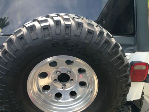 Some of the other details: -LT1 w/ 4L60E transmission -Custom Aluminum Radiator w/ auto electric fan -Howell Engine Developments ECU -NP231 Transfer Case -JKS Sway Bar Disconnect -Skyjacker 4 inch lift -Rancho RS9000 shocks -Custom Drive Shafts -(5) 33x12.5x15 Mickey Thompson Baja Claws -Brand New Battery -Newer (1 year) Bestop Soft Top w/ tinted windows -Bestop Bikini top -(5) 15 inch American Racing aluminum wheels -Husky Liners floor mats -Trailer wiring w/ receiver I'm probably leaving some items out. If there are specific questions or parts of the Jeep you would like a picture of, contact me and I can email/text whatever you'd like. The only minor defect is the rear passenger corner has a small dent from where I backed in to the basketball pole at the house. I will drop 150.00 off the price at the end of the auction to cover this. You won't be disappointed with this Jeep. If you live close I could meet you somewhere to look it over. |