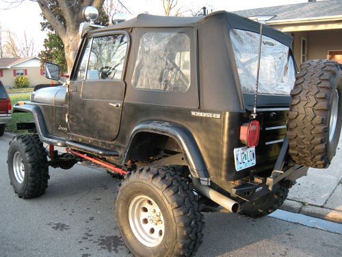 Up for sale is an '87 Jeep Wrangler. This was the first year of the wrangler and square headlights. Previous owner built it from stock to where you see it today. I will list all the parts/items that I know of that are on this Jeep and try to describe it as accurately as I can. It has a 3 in. body lift and 2.5 Skyjacker lift as well as an additional spring added on front end to improve the ride. So this Jeep is set up very high and made to go over or through about anything. It was not meant for long trips but I have had it on multiple 2 hr. rides with no problems and it rides very smooth down the road. It was built for mudding and trail rides so the lift works great for that. There is an additional fan added to help cool the radiator. I was told to always have it on but the jeep has never ran hot with or without it. I believe it was beneficial when mudding and climbing to help keep it cool as it has barrier to keep mud from engine compartment. Previous owner also installed lights on front and underneath to help see if have issues on the trails and need additional light. Fender flares could use replacing or repainting if desired. This is easily done. The Rally lights on top are not wired and just for show. They can be wired but they run a lot of power so would need an additional battery. I have tried to list anything that might be of concern and I am not trying to deceive anyone. Overall this Jeep is in great condition and a lot of fun. I have found NO RUST. If anywhere, it's surface but I honestly haven't found any. Recent oil/fluid changes. Drained and re-filled the gears professionally. Email with any questions or if you want to see additional pics or video of it running. Could also see in person if desired. Buyer is responsible for Local Pick-up only. Payment in person Cash only.
