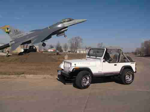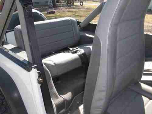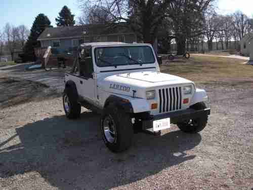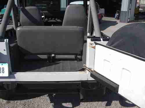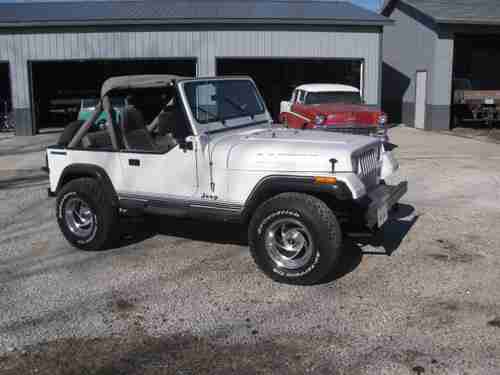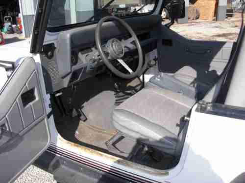 For Sale is a very nice 1988 Jeep Wrangler YJ with only 62,000 original miles. 6 Cylinder, 5 speed that runs and drives like new. I got it from my neighbor about a year ago. It has always been kept in the garage in the winter months. He bought it in 1991 with 39,000 miles on it. That's what I call a real survivor. It would be hard to find a nicer Jeep in such original condition as this one. To the best of my knowledge everything is original including the paint except for the Laredo sticker I put on the hood just for looks. It has nice mags and very good 31-1050-15 BF Goodrich tires. I do have the original white wheels and the little Jeep center caps that came new with the Jeep. It has a good white soft top. Very usable, but not perfect. It has a factor tach and power steering also. It also has a bikini top. I will deliver it to your door in the US only at an agreed price, otherwise you are responsible for shipping. The buy it now is $7900. If you want to see the Jeep please call me at least a couple days before the end of the 10 day auction. This Jeep is well above average condition so bid with confidence. Please call or email for more pictures. Thank you.