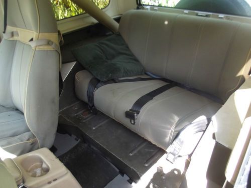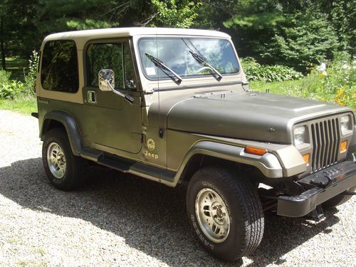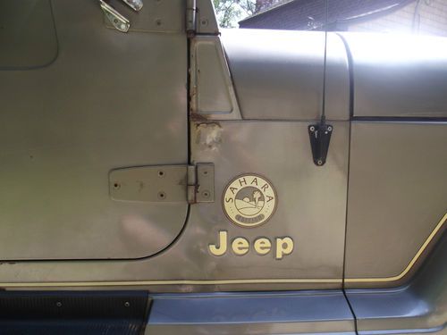 Up for sale is a really solid 1990 Jeep Sahara. If you have had Jeeps before you will know by looking at the pictures that this one is extremely clean/solid for its age. Since last December it has had a new starter and new rear brakes. Engine runs/idles flawlessly, clutch engages just as it should, transmission pulls very strong at low rpms with no vibrations or hesitations. Only thing I would have adjusted are the syncros as getting into reverse at times is a little tricky. Four wheel drive works but the engaged light does not light up on the dash. Body mounts are all there and are in great condition. The floors for this year Jeep are in incredible condition along with most of the undercarriage. The body is in above average condition as well although there have been some areas patched. Original interior is in fantastic condition for its age with virtually no tears or holes. The dash is in perfect condition....even the clock still works! The original radio has been replaced with a working JVC cd player/radio. Windshield has been replaced and is crystal clear. There is a like new 2 inch received trailer hitch installed as well. If you have been looking for an older jeep don't let this one pass you buy as you would have to look long and hard for one in this kind of shape. I have taken a bunch of pictures so if you should be able to see anything you may need to look at. If you have any questions or would like to inspect the Jeep(which is highly recommended and welcomed) just shoot me an email.
