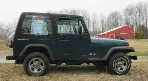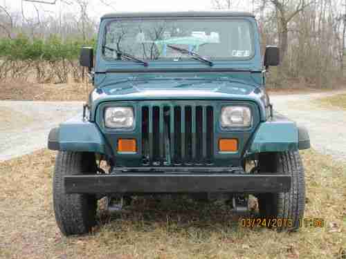 1995 Jeep Wrangler 4x4. 2.5 litre 4 cylinder, automatic transmission. Has 143,000 miles. Body has little to no rust. Frame is solid. Floors are solid, small patched area at the drain holes on both front floorboards. Carpet was removed before we bought it. Had a new bikini top on it when we bought it and this will be included. We added the hard top which is in very good condition. It originally had a hard top but the rear window was broken out and to replace the window assembly was the same price as the new top. The tailgate has a little bend in it, the spare tire rack was damaged when we got it.That is probably what happened to the rear window. I removed the rack and added the third brake light as it was required for inspection. She liked the jeep better without the rack on the back for visibility. The spare tire is included. This was my daughters first car. She drove it for about 1 year until a Toyota pick-up we had been trying to purchase became available. It has been very dependable for her. I drove it to work for several weeks with no issues. Gas mileage is 14-15 mpgs around town. Not sure highway mileage. The throttle position sensor was just replaced. The temperature sensor was also just replaced. Have a new, never installed crank position sensor that will be included. Was told to keep a spare one in the glove box for emergencies. Cost $60 at Kunkles in Bel-Air. Jeep is currently inspected through November of 2013. The engine runs well and the trans shifts as it should. The 4 wheel drive works with no issues. The interior is in pretty good shape for the year. The drivers seat bottom has some cracking at the seams on the side. The other seats are very nice. The carpet is in place on the back wheel wells. The rear window wiper is functional but needs a wiper blade. The windshield wipers were installed before it got inspected. Tires are about 50% tread. The jeep is all stock and is in better than average condition. It passed inspection with no problems or issues other than a loose muffler clamp that makes a rattle at certain engine rpms. Overall it is very nice. Mileage when purchased was 134000. We bought it from a local dealer for $3500 plus tax and title, and paid $450 for the hard top. Jeep was awesome and very fun to drive. Would make an excellent first vehicle. My daughter passed her drivers licence test on the first try in this Jeep. Hope the good luck continues with the next lucky owner. Thanks for looking.