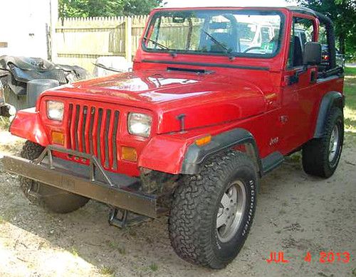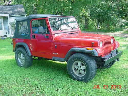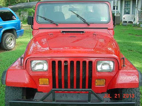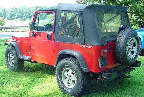 1995 Jeep Wrangler For Sale! It is a 4 cylinder(2.5) with a 5 speed transmission. It has about 145K miles on it, still driven daily. NO rust on frame or body! There is a very minor spot on the drivers floor pan that has been taken care of with some POR-15. Paint is still Nice, there is a very small dent on the LH fender. The interior is good. Seat have covers, only the drivers seat has some tears. Back seat is included. Includes Soft Top(Year Old), Bikini Top, and Wind Blocker. Has sound bar and a Sony stero. Has factory wheels with 32" tires. The tire should be replaced with something smaller, maybe a 30" or a 235/75-15. It is not lifted at all!