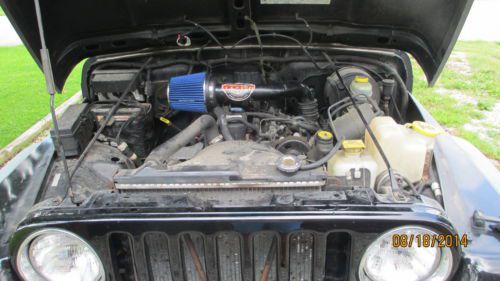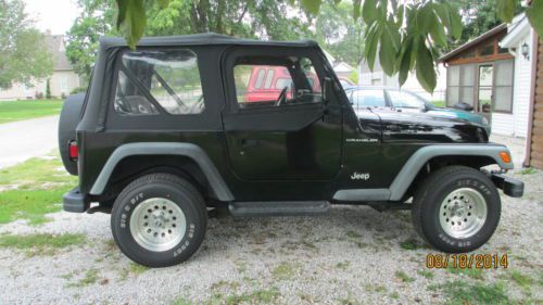 2 small rust areas as shown in photos, soft top has 2 worn places one on driver's side one on passenger side, both zippers stick have to lubricate occasionally. Jeep has new tires, new side mirrors, new brake lines, new back brakes and wheel cylinders, always been kept in garage, interior excellent conditions, oil always changed every 3,000 miles, in last 6 months have put approximately 200 miles, reason for selling don't drive anymore. |