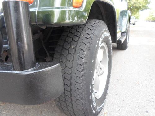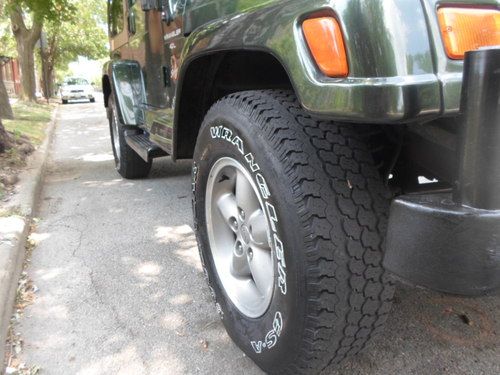 For sale is a 1997 Jeep Wrangler Sahara Sport Utility 4X4, Emerald Green 2 Door with Hard Top, convertible. Front bucket seats and a rear bench seat. Unit has an AM/FM, CD Player. 5 speed Automatic transmission with 2 wheel high, 4 wheel high and 4 wheel low ranges. Top is in very good condition with no leaks. Engine is the 6 cylinder 4.0 Engine. Used tires, but in a good condition, including the spare tire. New wide fender flares have been installed for the wider tires along with a new steering stabilizer and new shocks. The engine has recently been serviced with synthetic oil, filter, new ignition wires, hoses, belts, muffler and exhaust system.