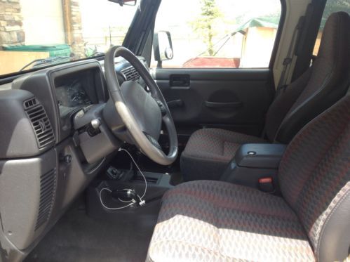 The vehicle does require that the fan speed be looked at as it only works on maximum setting. The air conditioning and heater all work perfectly. It has the hard top and the interior is in fabulous condition. We have a local Ford dealer service the vehicle. We are looking for a quick sale as we are leaving the country, this has been a great vehicle for us to own and look forward to buying another Jeep when we get settled abroad. On Aug-03-14 at 06:08:03 PDT, seller added the following information: I need to clarify that this is not a 2.5L but a 4.0L 6 cyl. This is a 2000 Jeep Wrangler Sport automatic Hard Top |