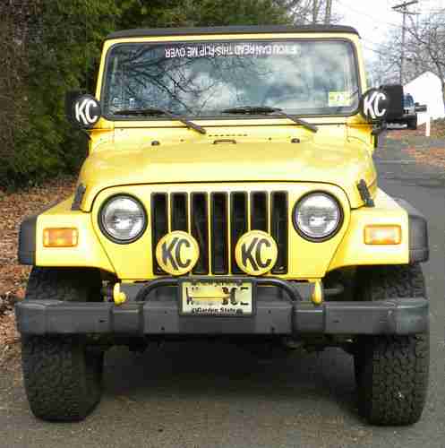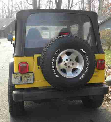 2001 Jeep Wrangler Sport, manual 5 speed. The jeep has (5) 33 x 10.50 x 15 BF All Terrains, in great condition. There is a 2 inch suspension lift, and 1 inch raised body mounts. Jeep is all original, no engine or exhaust modifications. Factory stereo, air conditioning (needs to be charged), off road lights are NOT wired up. Everything works great, good brakes, good clutch, all maintance performed regularly. Body is in great shape, no rot, interior is in great shape, has always been garaged or covered (cover is included). Please see all pictures, and ask me any questions, if seriously interested.