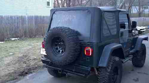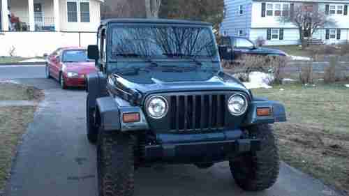 selling a 2002 jeep wrangler sport x. has 75k miles. 4.0 straight 6 cylinder. 5 speed standard. has black leather seats. all function as they should. windows are all tinted. jeep has the center counsole subwoofer previous owner had a remote starter installed. also has a skyjacker 4in lift kit installed. with brand new front shocks. has 5- 33x12.5x15 mickey tompson baja mtz tires mounted on crager d windows. this jeep has the factory dana 44 rear axle with 3.73 gear package. has extended flares to cover the wider tires. jeep has a few flaws in the paint and needs a new rear window. only reason i am selling is i am buying a house and can use the money. i am willing to work with buyer as far as pick up or delivery. feel free to ask any question 203 376 4365 thanks