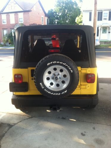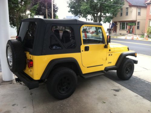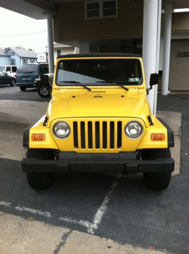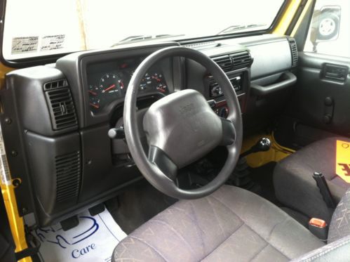 2002 jeep wrangler 4.0 5 speed. Body and paint is in good shape other than some stone chips and light scratches,there is a little surface rust under rear door. Top is new ,underneath is in good shape with no rot just usual surface rust. Interior is in good shape drivers seat has a few splits on side but not bad. Otherwise interior is clean. runs and drives great. Fly in and drive home!