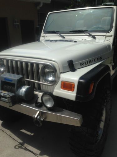 2004 Jeep Wrangler Rubicon in great condition. This jeep has been set up as the ultimate off road machine as well as a great daily driver. The extras are impressive and the list of them is long. Most of the custom options have been fabricated and built by a “master” Welder, they are one-of-a-kind and you'd have a hard time finding better quality anywhere. -2004 Jeep Rubicon -129,000 miles -6" suspension lift kit -315 75/R 16 Extreme Nitto mud grappler tires -Ramsey Patriot 9500 winch -spray-in Rhino liner on the interior -ARB air compressor -custom-built front and rear bumpers -custom-built half doors & the stock doors are available. -soft-top is available and will be included with the jeep but will need to be replaced in the near future (the top hasn't been on the jeep in years) -custom-built hi/low jack mount to the rear bumper -custom-built rear storage box w/10"subwoofer and JBL amplifier (this is located where the backseat would normally be, the backseat will be included if the buyers wants it).