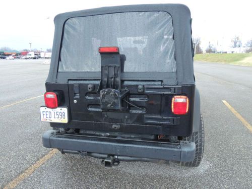2004 JEEP WRANGLER TJ 4x4 Tow Package , NEW TOP , new Battery, New Clutch and Pressure Plate, Good Running quiet motor , Good brakes, Clean Title,,Rear Tires are almost new, front tires are about 1/2 or a little more newer, clean inside, No rust holes on frame,,clean underneath with no signs of Offroad use, very clean floor boards with the primer still showing, clean on top of gas tank,,never been used for offroad use,,Am FM Cd with Sound Bar and overhead lights, Nice new top with all new rubber around doors and back door,,back inside is very clean , this does have a spare tires but it is the wrong size,,it is new,,but to small,,only to be used in emergency situations without using 4x4 because it is a smaller tire,, 5 speed manuel transmission , this is a clean Jeep and runs very strong,,the only thing wrong is that there are scuffs and scratches on the paint job with some touch up from a touch up bottle here and there,, 100 Dollar deposit required on winning bid,,,Cash in person only on Pickup No shipping available,, Pickup only |