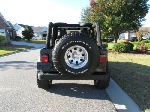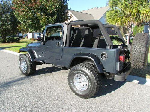 This is a 2004 Jeep Unlimited 4x4. It is automatic. The jeep is in outstanding condition. It has AC, CD, 12000lb winch (I took the pics before I installed the winch), 4 inch lift and 35 inch mud terrain tires. It has a brand new Mopar soft top (not an after market top). The paint is less than 2 years old. It was painted inside and out with base coat clear coat. It looks amazing. No scratched or dents. It drives great. It does not smoke, leak or make any funny noises. Everything works. The interior looks great too. The jeeps flooring has been rhino lined for looks and durability. No rips or tears in the seats. 4 wheel drive system works great. There are two issues with the title. It was in a small accident. The previous owner hit a tree, damaging the driver side fender and hood. No other damage and the title is clear. The previous owner also checked the wrong box on the back of the title so it now reads not actual mileage. It is actual mileage. The Auto Check report shows the mileage is correct. I have the clear title in hand. This is an awesome jeep at a great price. Email me with any questions. |