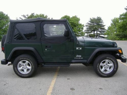 LOW MILES: 26,000. Runs and drives like a new one. 4.0 liter 6 cylinder engine with 5 speed manual transmission, 4X4, tow hooks, ice cold A/C, tilt wheel with cruise control, AM/FM/CD stereo with factory subwoofer, convertible soft top with half doors, factory side steps, fold & tumble removable rear seat, interior: seats and carpet are like new, tires are like new. Title in hand, no liens. This Jeep has been in an accident. I replaced the front fenders, hood, bumper and grille. I have CARFAX and it shows detailed dealer maintenance history. Thanks for looking! Good luck bidding.