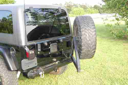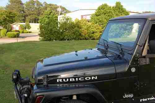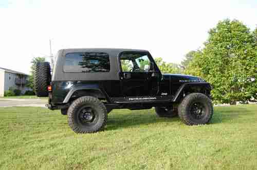 For Sale 2006 Rubicon Jeep (2)- Door Black in Color Lifted with Winch, Spare Tire Rack with Bumper, appears to be clean.