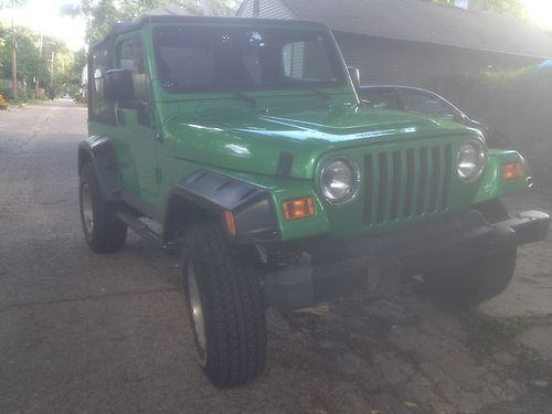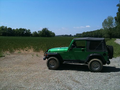 This has been our second car/good weather toy, and we haven't put many miles on it. It's got no rust, no dents, and no mechanical problems. It does need some paint on the hood where birds and tree sap have caused damage, but that's the only flaw. It's among the last of the old AMC/Jeep straight sixes before they switched to a Chrysler engine in 2007. The color is Electric Lime, one of two crazy colors they put on these in 2005 (the other was orange).