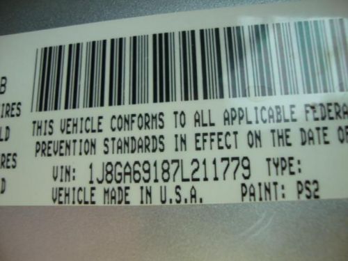VIN (Vehicle Identification Number): 1J8GA69187L211779