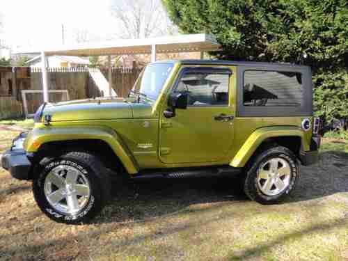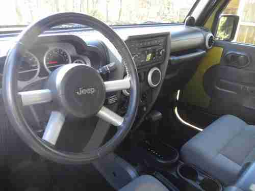 2008 Jeep Wrangler Sahara-Immaculate Inside with Upgraded Sound System, Satellite Radio and Optional Factory Rubber Floormats, service records available. Brand new Duralast Battery, Good Tires. Factory chrome Grill Inserts, Gas Cap Cover, and Tail Light Covers. Just out of 3yr factory warranty but Jeep does have 5yr/100,000 mi rust warranty. I would call the outside immaculate also but on the left fender there is a small patch of sctratches(see last pic). We know this was done during an oil change due to a mechanic that didn't put a rubber mat over the fender. We believe he scratched the top of it with his belt buckle. This was unable to be proven and we only received an "I'm Sorry if we did it" from the oil change business. This patch is approximately 4 square inches. Other than that the body looks great. If you're serious about a good used Sahara this is it!