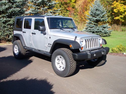 2008 Jeep Wrangler X Unlimited V-6 auto, ps, pb, power locks and windows, 3 inch Zone lift kit with 5 new rims and BF Goodrich TA 35 inch tires with only 15,000 on tires, K&N cold intake system, Ziebart rust proofing, upgrades include hood latches to eliminate hood flutter, running boards, extra padded console, never off road, new brakes, recent tune-up and oil change. Excellent condition, no dents or scratches. 42,000 miles. Call 231-620-9040.