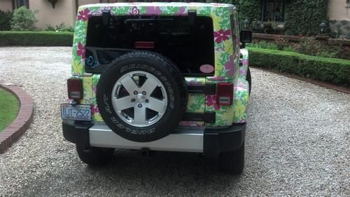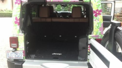 Very nice Jeep with a "Lilly Pulitzer" flower mask. A huge multi million dollar brand that all young women recognize. And if you don't like the mask it is removable. Its original color scheme is white exterior and brown leather interior with both tops. For more information contact me Larry @ 910-638-1753