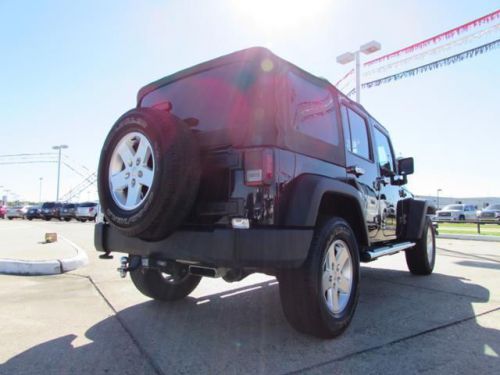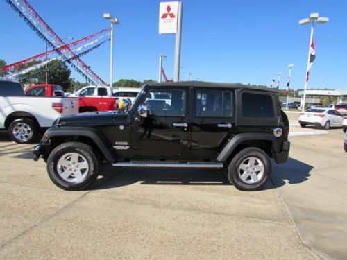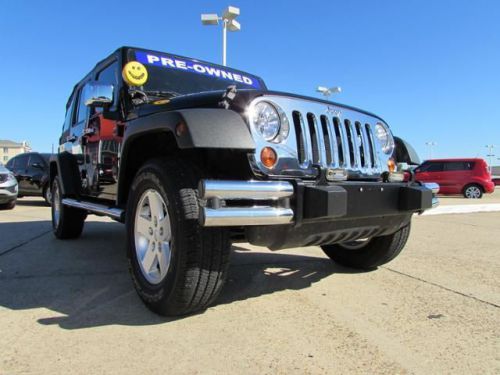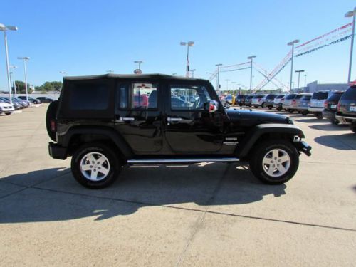Excellent Condition, GREAT MILES 7,938! Sport trim. iPod/MP3 Input, CD Player, 4x4, Non-Smoker vehicle. CLICK ME!======KEY FEATURES ON THIS UNLIMITED INCLUDE: 4x4, iPod/MP3 Input, CD Player MP3 Player, Child Safety Locks, Steering Wheel Controls, Rollover Protection System, Electronic Stability Control. Sport with Black Clear Coat exterior and Black Interior interior features a V6 Cylinder Engine with 205 HP at 5200 RPM*. Non-Smoker vehicle. ======JEEP WRANGLER UNLIMITED: LIVE WIDE-OPEN: Best 4x4 of the Decade: We weren't surprised in the least at the latest award from Four Wheeler magazine. Jeep vehicle capability is legendary - the culmination of more than 70 years of experience and real-world testing. 4x4 mastery has always been the cornerstone of the Jeep brand. All Wrangler models come equipped with a capable 4WD system as standard equipment. (www.jeep.com) ======VISIT US TODAY: At the Orr Group in Texarkana, TX we treat the needs of each individual customer. We know that you have high expectations, and as a dealer we enjoy the challenge of meeting and exceeding those expectations each and every time. Allow us to demonstrate our commitment to excellence. Our experienced sales staff is eager to share its knowledge and enthusiasm with you. Pricing analysis performed on 5/19/2014. Horsepower calculations based on trim engine configuration. Please confirm the accuracy of the included equipment by calling us prior to purchase. CALL NOW for your eDiscount!!! ORR CHEVROLET'S qualified Internet Sales consultants are standing by!!! PRINT this AD and present it upon arrival at the dealership!!! For MORE information on this vehicle or to APPLY FOR FINANCING go to www.ORRCHEVY.com - Make sure that you PRINT THIS AD and BRING IT INTO THE DEALERSHIP!!! Prices subject to change.