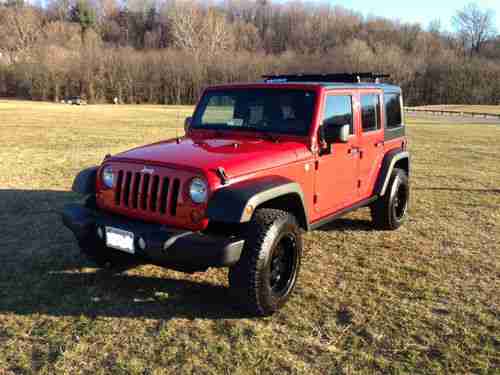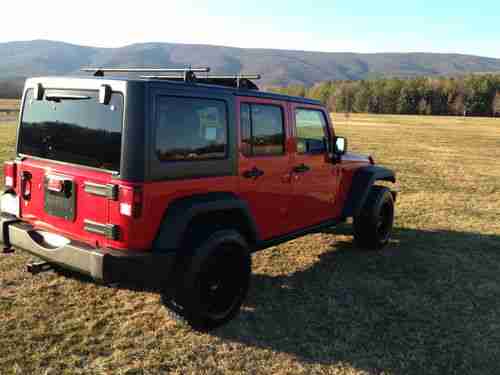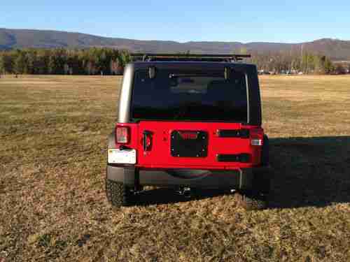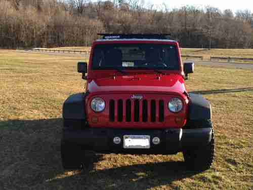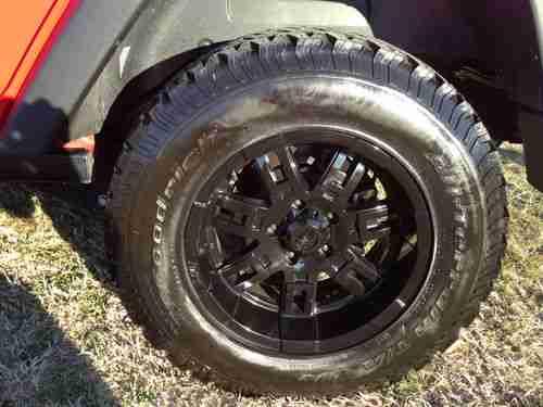 Awesome jeep for sell. Mickey Thompson Black Wheels with BFG All terrains with about 20k on them. I added the Rubicon Rock Rails to the side of the jeep and deleted the rear tire holder just because i preferred the look but the tire carrier and hardware will come with the jeep when it sells. I also have side mirrors so if you take the doors off you still have mirrors. I added grab handles and a nice set of weather tech Floor mats. Jeep is all Stock no Lift Nor has there ever been a lift on it. The only thing ive don to the engine is add a K and N Drop in air filter so i didn't have to keep buying filters. The radio wasn't to my liking so i had Best Buy install Alpine all the way around including a deck with Bluetooth Hands free and a sub woofer so the radio sounds great. Power windows, and freedom Hard Top. Also has the towing package.The only thing i ever pulled was a small trailer with camping gear on it and it did fine. I hate to sell it. Its been a great jeep but i have a new baby coming and need to get out of the car payment. The title is held at my Local Credit Union so it will be a smooth transaction. No tears in the seats. Tailgate has a few dings here and there but nothing crazy. Oil changed every 3 and this jeep has never been offroad. Any questions please feel free to email me. Good Luck!