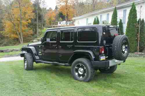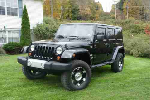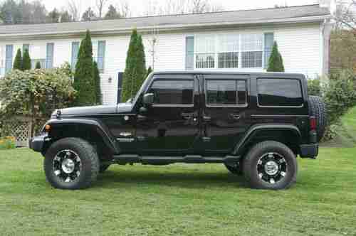 Up for sale is My wifes 2012 Jeep Wrangler Sahara Unlimited. She is a black beauty head turner. Bought in the fall of 2011, It has 26K highway miles driving her back and forth to work and the kids to every sporting event and practice. NEVER off road! Jeep has a professionally installed 3" lift in the front and 2" in the rear for leveling purposes. Custom Tires and wheels and proffessionally tinted front windows. The jeep is loaded with Power Windows, leather heatedseats, AC, Touch Screen Navagation and radio including sirius satelite. Paint is factory new. Tires are about 40%. It has a 3 peice painted hard top and remote start. Runs and drives like a new Jeep and has no issues whatsoever. The only reason we are selling itis because my wife took a job the adds 30 miles a day to her commute and Jeeps are not known for there gas milage. Trust me.. This is breaking our heart. We currently get about 16.5 MPG with it in alot of stop and go traffic. You will not be disappointed in this vehicle. Thanks for looking.