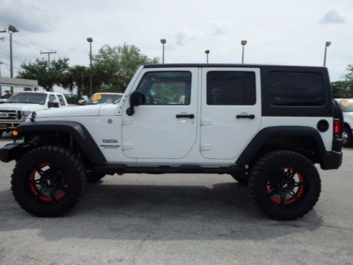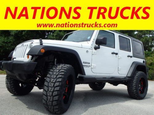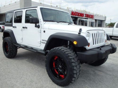 2012 JEEP Wrangler Sport Unlimited 4x4, FLAWLESS ONE-OWNER, fully inspected and serviced and ridin' on a brand new 4" Rough Country suspension lift, four brand new 35" tires and new 20" Moto Metal wheels! This beautiful Wrangler is like new inside and out and she comes fully equipped with keyless entry, power windows, power doorlocks and mirrors, cruise control, tilt steering wheel, CD/MP3 with Sirius satellite radio, Infinity audio and much much more! Perfect for cruisin' down the beach on a beautiful Sunday afternoon. For a better truck at a better price visit Florida's new truck alternative Nations Trucks today and let us help you find the perfect truck or SUV for both you and your budget! Repair Description: 25 Mile Road Test, 135 Point Inspection, Lube Oil and Filter, Battery Test: Good, Alternator Test: Good, Installed New 4" Rough Country Suspension Lift, Mounted and Balanced Four New 35" Tires, Installed New 20" Wheels, Replaced Tail Lights, Full Detail, Total Invested = $3,860.00...Labor time quoted by All Data Universal Shop Key*see dealer for details All certified Nations Trucks have been fully inspected and serviced and come backed by our ONE YEAR BUMPER TO BUMPER WARRANTY! We look forward to earning your business, please call 866-535-5519 to schedule your test drive or visit us anytime at www.NATIONSTRUCKS.com